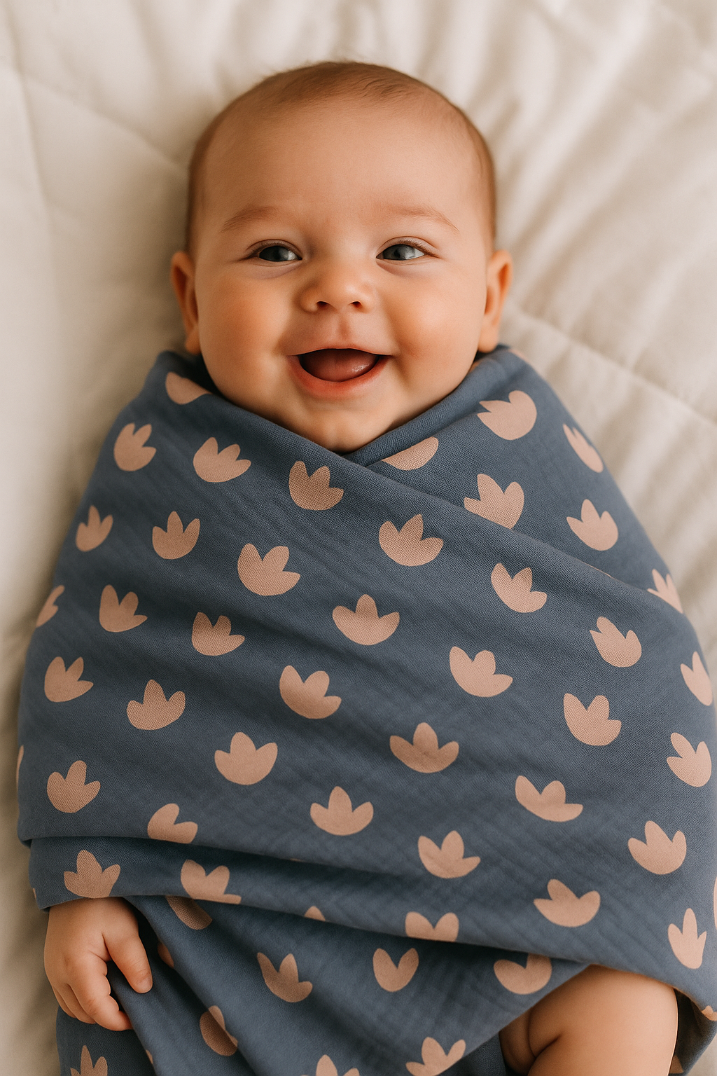 Crafted from ultra-soft bamboo fabric, our Nüni muslin blankets are the perfect accessory to keep your baby comfortable and cozy. With their breathable and lightweight material, these muslins are ideal for any season of the year. The prints range from delicate dinosaur footprints to bright stars and heart-filled patterns, creating a design meant to stimulate the senses and provide warmth. Whether for swaddling, sun protection, or simply creating a snug space, these muslins bring style and functionality to every use.